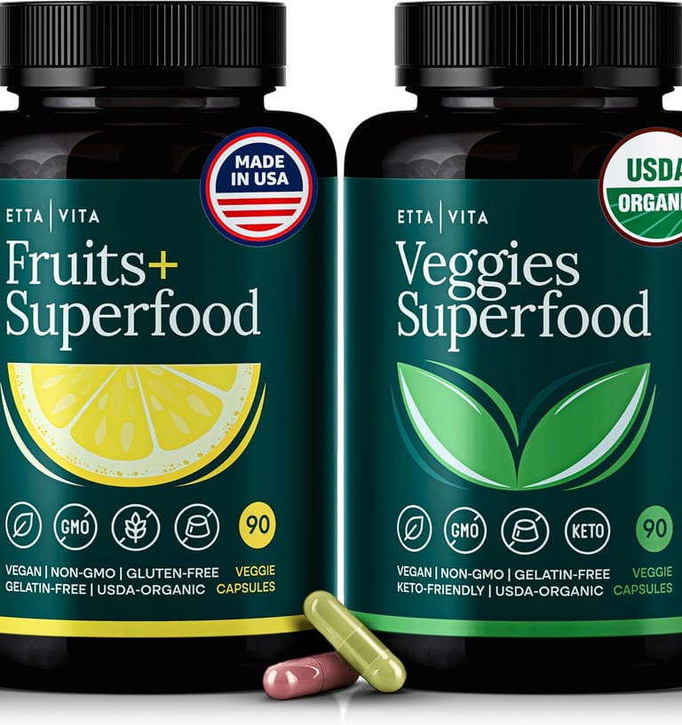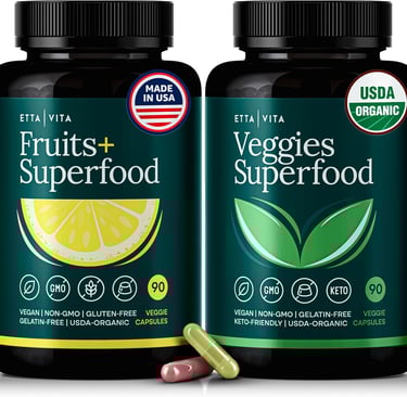 A daily boost of plant-powered nutrients with 180 organic fruits and veggies in each bottle. Supports natural energy, focus, and overall wellness—vegan, non-GMO, and gluten-free.